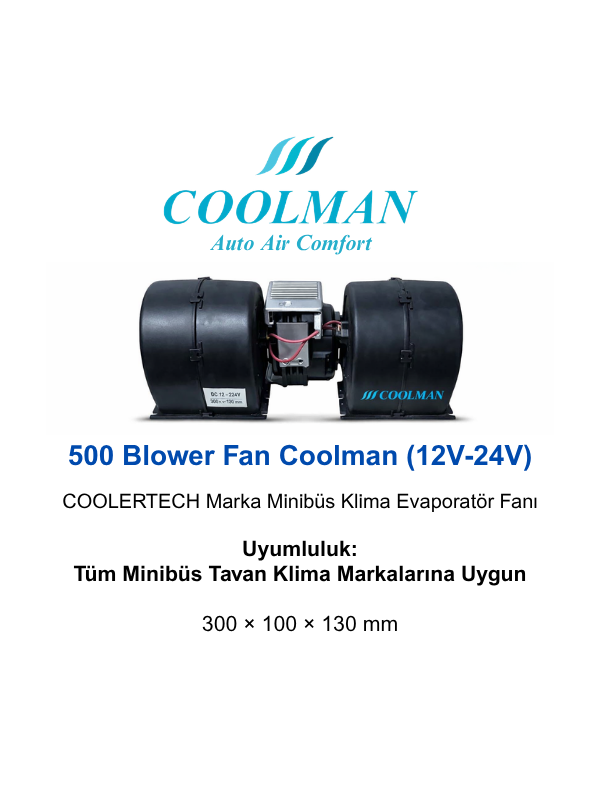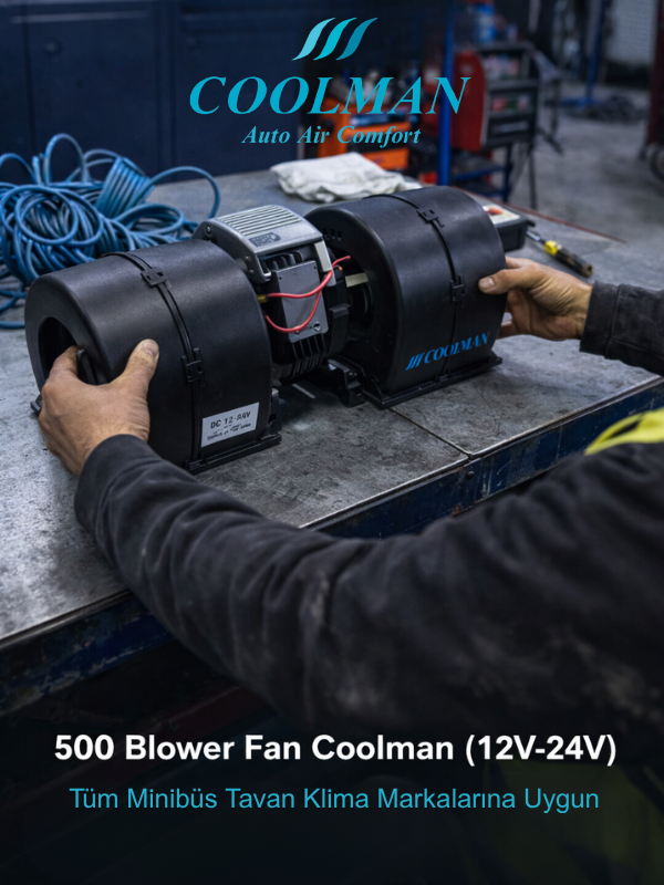 Coolman & Coolertech kalitesiyle sunulan bu blower fan, klima içerisindeki hava sirkülasyonunu maksimum seviyeye çıkararak soğutulan havanın kabin içerisine hızlı ve dengeli şekilde dağıtılmasını sağlar. Özellikle minibüs ve ticari araçlarda etkili ve homojen soğutma için ideal bir çözümdür.