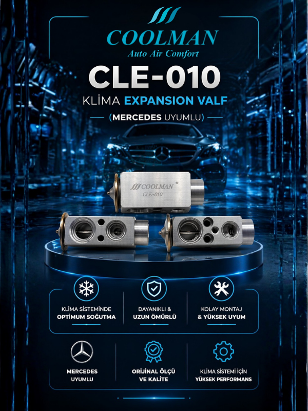 CLE-010 Klima Expansion Valf, araç klima sistemlerinde soğutma performansını doğrudan etkileyen kritik bir bileşen olup, özellikle Mercedes araçlarla uyumlu olarak geliştirilmiştir. Klima sisteminin verimli, dengeli ve uzun ömürlü çalışmasını sağlamak amacıyla yüksek hassasiyetle üretilmiştir.